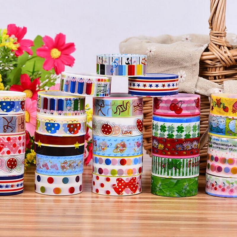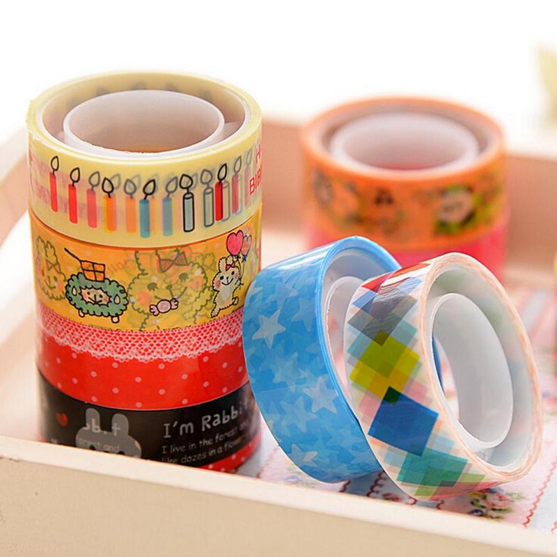 Скотч декоративный с разноцветными наклейками, набор из 10 штук