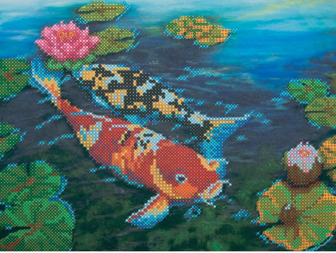Ткань (габардин) с нанесенным рисунком-фоном, областями для вышивания и цветовой схемой для выбора бисера. Готовую картину можно оформить в багет.