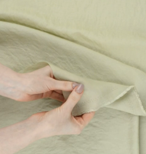 Легкая, но вместе с тем прочная гладкокрашенная ткань с рельефной, слегка меланжевой поверхностью. Материал с льняной структурой и эффектом крэш. Приятная и мягкая на ощупь, обладает матовым блеском и образует на изделиях красивые складки. Вискозная ткань: воздухопроницаемая, гигиеничная, слегка просвечивает. Одежда из ткани крэш практична и удобна: надев ее утром, можно целый день не беспокоиться о внешнем виде. Подходит для пошива одежды в классическом стиле и различных летних изделий.