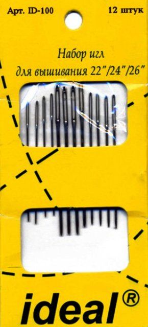 Иглы ИДЕАЛ - IDEAL арт. ID-100 для вышивания ассорти (уп. 12 игл)