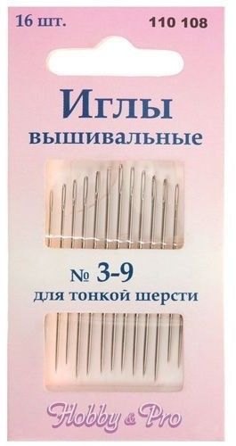 Иглы вышивальные для тонкой шерсти №3-9, 16 шт.