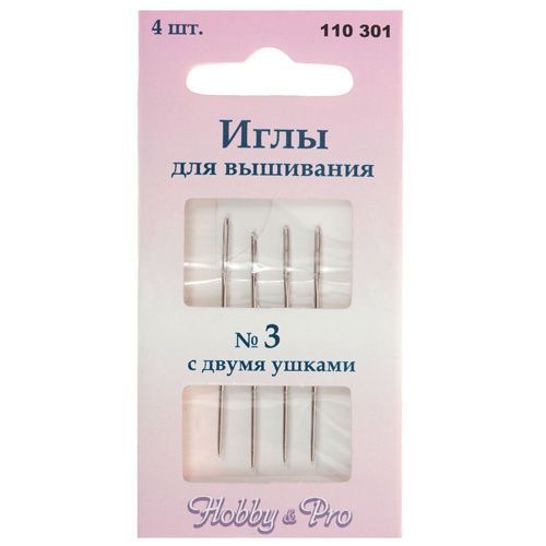 Иглы вышивальные с двойным ушком №3, упак./4 шт