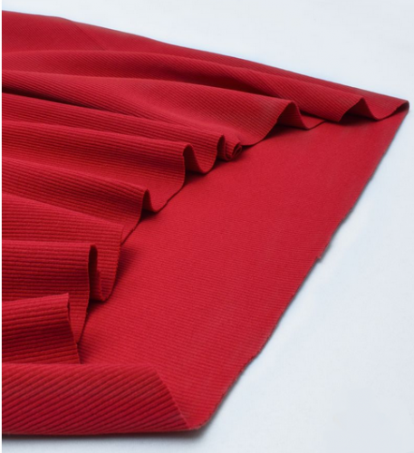 Совместное производство России и Турции. Плотное полотно с выработкой в мелкую резинку. Производится "чулком". Если разрезать ткань, ширина будет составлять 110 см.