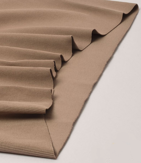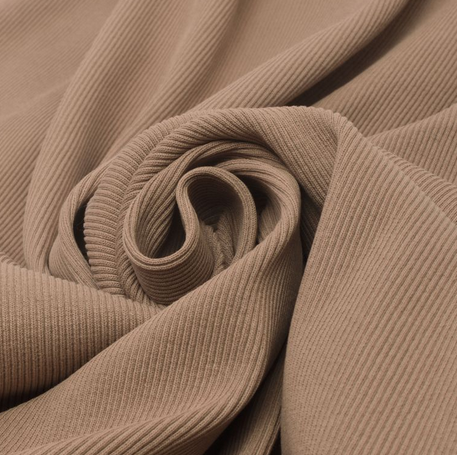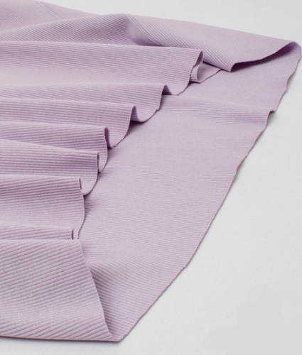 Совместное производство России и Турции. Плотное полотно с выработкой в мелкую резинку. Производится "чулком". Если разрезать ткань, ширина будет составлять 110 см.