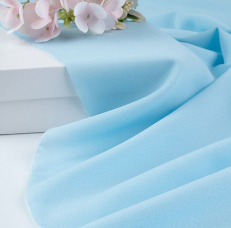 Очень тонкая, струящаяся ткань из нитей креповой крутки. Поверхность полотна матовая, гладкокрашеная, с характерной креповой фактурой. Материал полупрозрачный, эластичный за счет плетения, хорошо драпируется. Подойдет для пошива вечерних платьев, блузок и юбок.