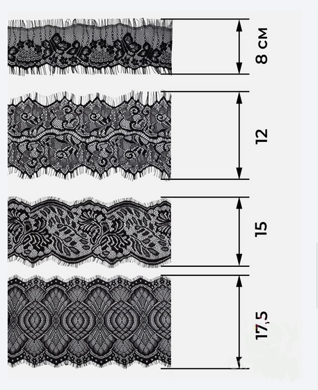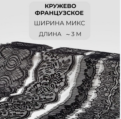 Кружево французское набор микс (4 дизайна ~3метра каждый), черный