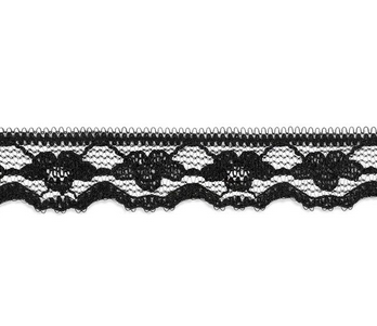 Одностороннее ажурное капроновое кружево с фестонами по нижнему краю. Применяется в отделке белья, женской и детской одежды.