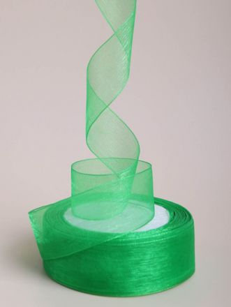 Лента-органза для декора 24 мм х 25 ярд - зеленая