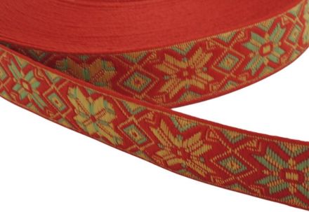 Лента жаккардовая отделочная шир. 24 мм арт. 9288 цв. красный/желтый (уп. 25 м)
