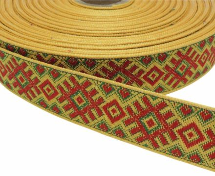 Лента жаккардовая отделочная шир. 24 мм арт. 9474 цв. зеленый/красный (уп. 25 м)