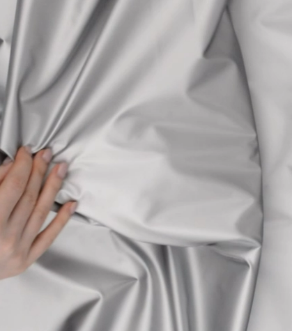 Ткань пропитана полиуретаном и переливается благодаря уникальной фактуре. Несомненно, имеет ряд преимуществ: устойчивость к влаге и различным воздействиям, скользкая поверхность снаружи, мягкая внутри. Прекрасно подходит для пошива абсолютно любой верхней одежды: ветровки, плаща, куртки, жилета и пуховика.