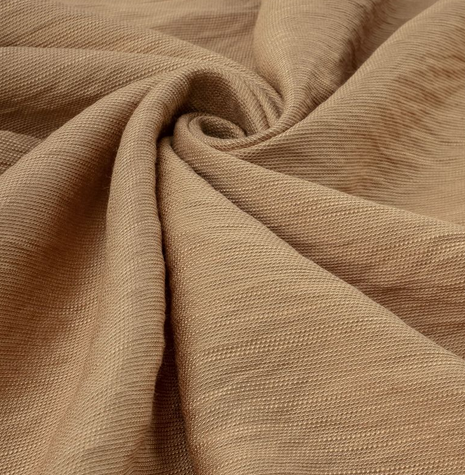 Легкая, но вместе с тем прочная гладкокрашенная ткань с рельефной, слегка меланжевой поверхностью. Материал с льняной структурой и эффектом крэш. Приятная и мягкая на ощупь, обладает матовым блеском и образует на изделиях красивые складки. Вискозная ткань: воздухопроницаемая, гигиеничная, слегка просвечивает. Одежда из ткани крэш практична и удобна: надев ее утром, можно целый день не беспокоиться о внешнем виде. Подходит для пошива одежды в классическом стиле и различных летних изделий.