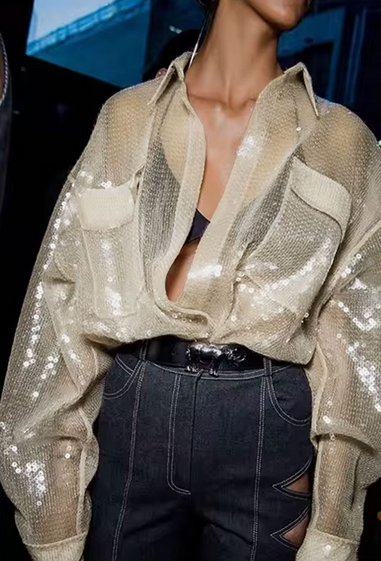 Пайетка на сетке "Квизия", молочный