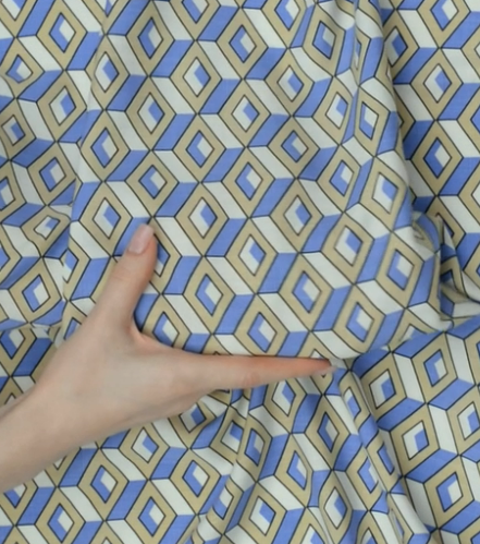 Плательная вискоза "Тропикана", голубой / молочный / бежевый