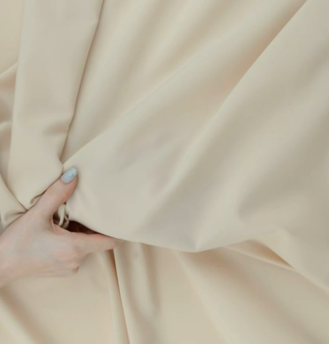 Матовый подклад с ровной плотной структурой, поверхность приятная на ощупь. Растягивается за счет текстурированных нитей. Отделка гладкокрашеная. Полотно легкое и гладкое. Используется в качестве подклада таких изделий как юбки, платья, жакеты и изделия из трикотажа.