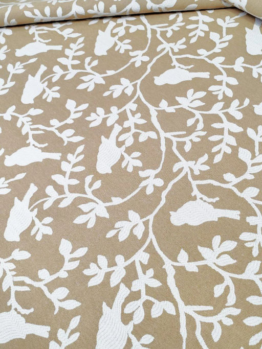 Птицы бежевый фон Ткань ширина 280 см Отрез 2м 2517219