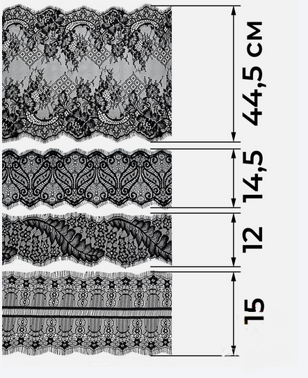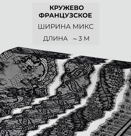 Кружево французское набор микс (4 дизайна ~3 метра каждый), черный