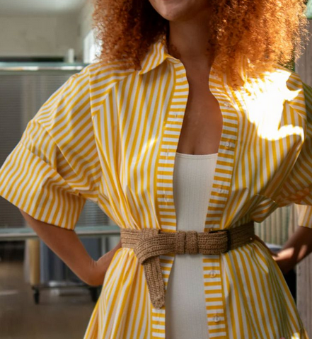 Штапель принт, горчичный / белый