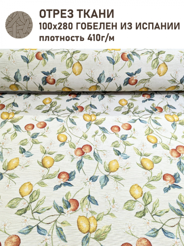 Рисунок создается переплетением нитей различных цветов и фактуры. Состав ткани: хлопок ( дающий фактуру и приятную тактильность ) и синтетические нити ( придающие износостойкость ). Плотность гобелена 410 г на кв.метр.