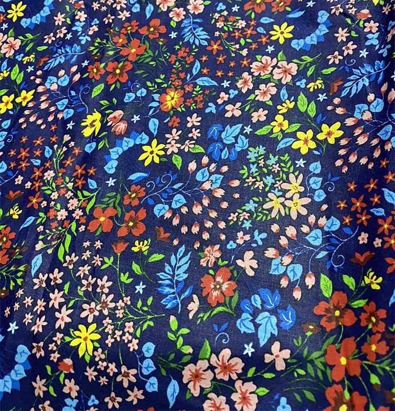 Ткань ситец 95 см "Полевые цветы" (темно-синий фон)