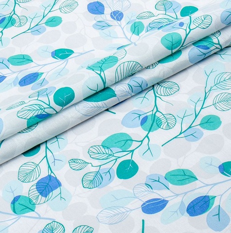 Ткань бязь 150 см ЛЮКС "Эвкалипт" (б/з синий)