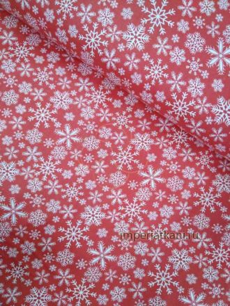 Ткань бязь 150 см ЛЮКС Снежинки (красный)
