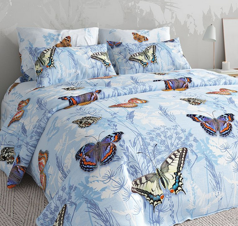 Ткань бязь 220 см ЛЮКС Бабочки (голубой)
