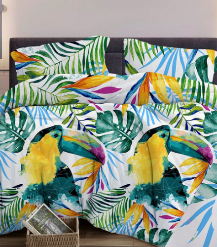 Ткань бязь 220 см ЛЮКС Туканы (зеленый)