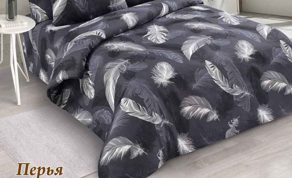 Ткань бязь 220 см ЛЮКС Перья (темно-синий)