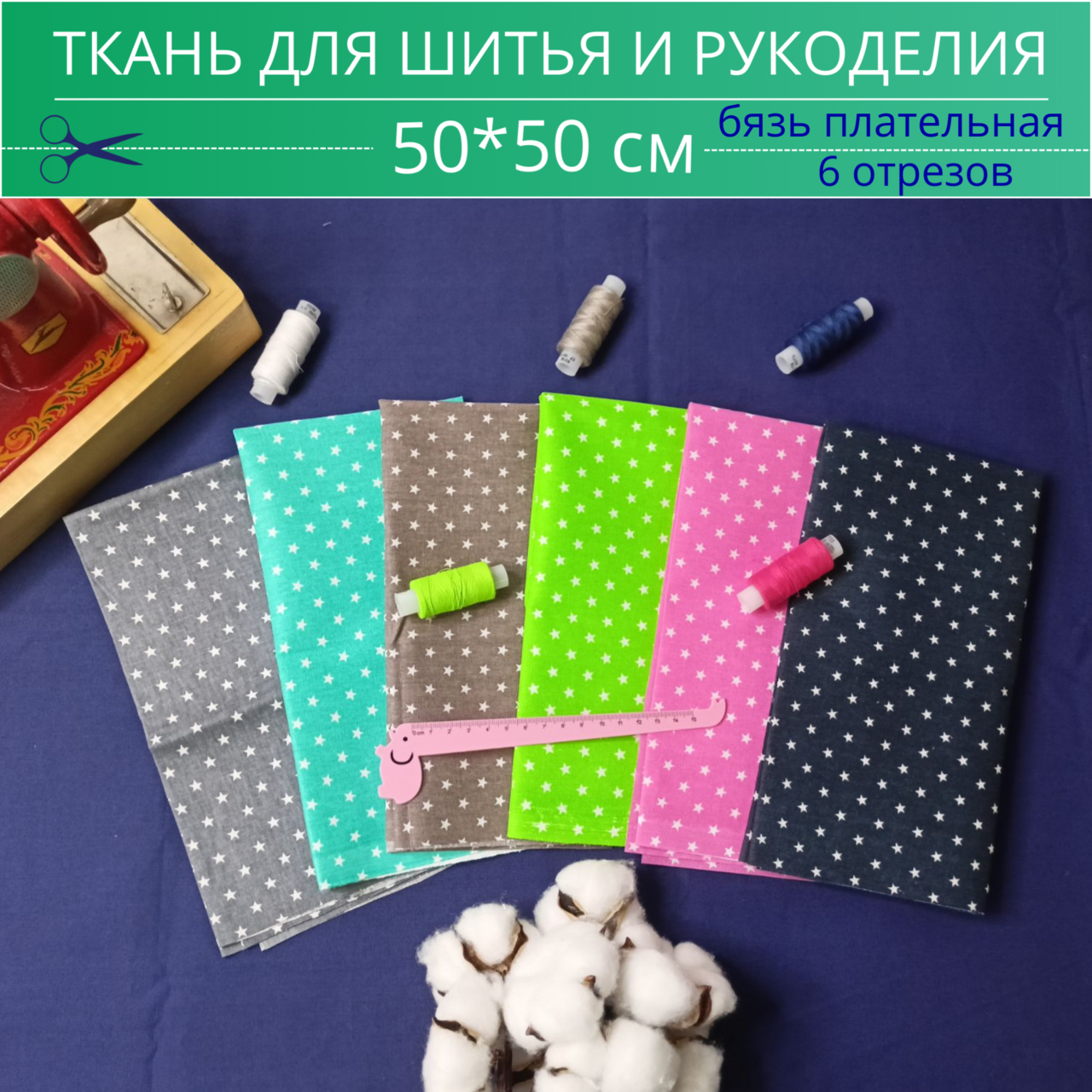 Ткань для шитья и рукоделия БЯЗЬ "Набор из 6 отрезов 50*50 см, 100% хлопок, звездочки