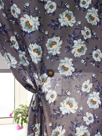 Ткань рогожка 150 см Пиония (серо-голубой)