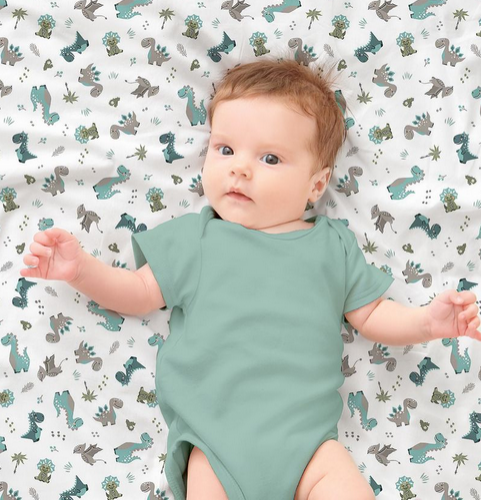 Ткань ситец 95 см Динозаврик (розовый фон)