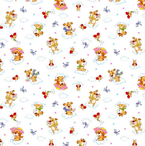 Ткань ситец 95 см "Собачки" (белый фон) арт. 21045-1