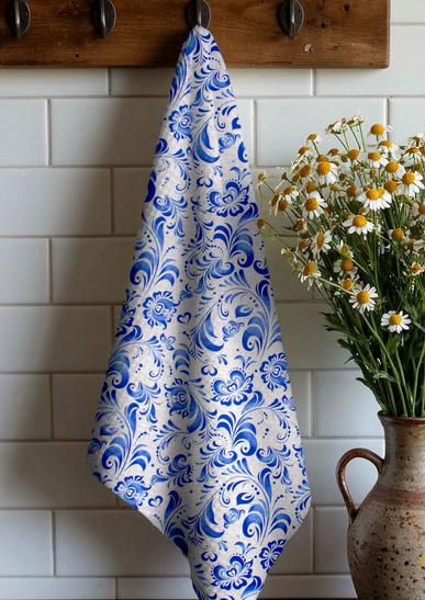 Ткань вафельное полотно 150 см Гжель кройная