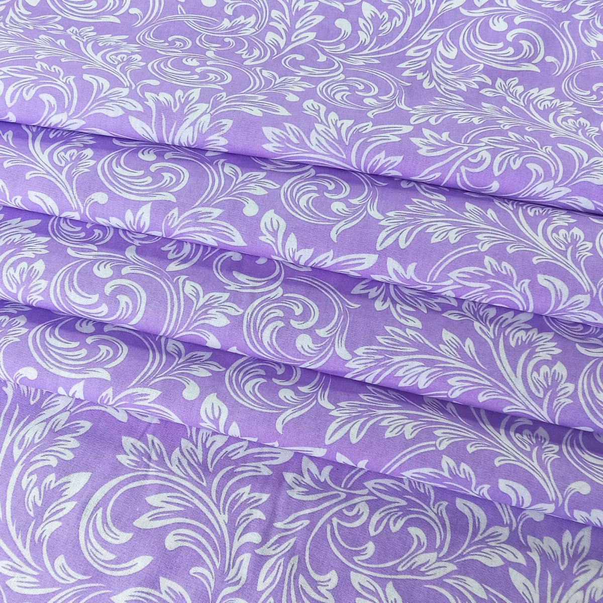 Её нежный лавандовый оттенок и изящный дизайн с завитками придадут вашему интерьеру лёгкость и элегантность. Благодаря составу из 100% хлопка и плотности 120 г/м², ткань обеспечивает не только визуальную привлекательность, но и долговечность, сохраняя свои свойства даже после множества стирок.