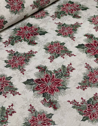 Рисунок создается переплетением нитей различных цветов и фактуры. Состав ткани: хлопок ( дающий фактуру и приятную тактильность ) и синтетические нити ( придающие износостойкость ). Плотность гобелена 410 г на кв.метр.