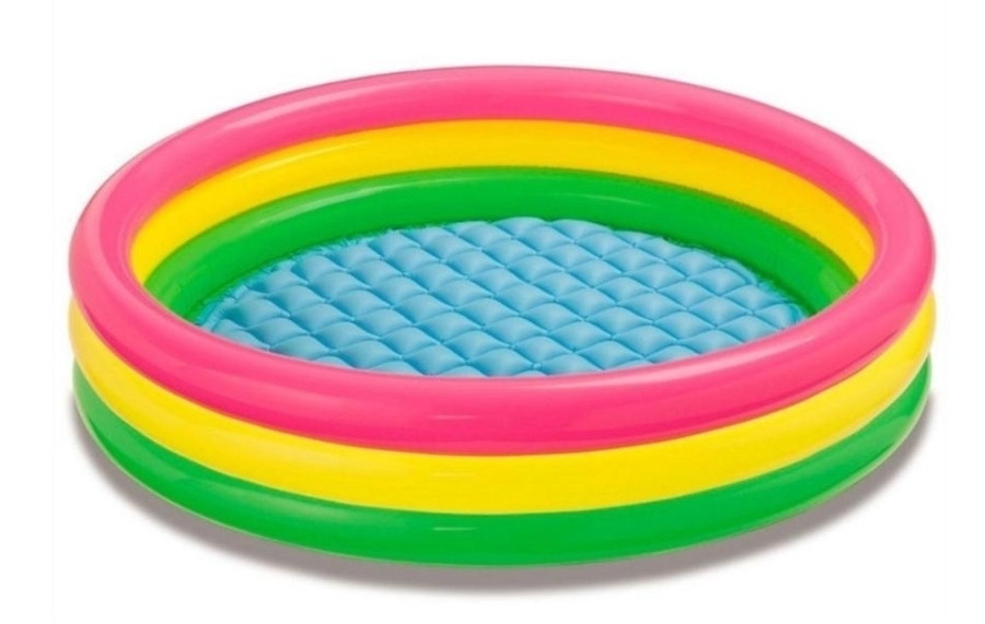 В ассортименте Надувной детский бассейн для дачи Интекс «Радуга» диаметром 114 см и высотой бортиков 25 см на 131 литра, отлично подойдет детям от 3х лет. Детский бассейн с надувным дном позволит малышу освежиться в жаркий летний день в абсолютной безопасности, а вы спокойно сможете контролировать температуру воды, чтобы ребенок не простыл. Мягкие надувные бортики и надувное дно уберегут малыша от возможных травм. Легкая и быстрая установка. Яркая расцветка. Изготовлен детский бассейн из высококачественного, прочного винила, упакован в небольшую коробку, поэтому его удобно брать с собой на пляж или на пикник. Бортики и дно надуваются независимо друг от друга. А если погода на улице не позволит малышу купаться, его можно использовать, как сухой бассейн, наполнив шариками. Подойдет для дачи и отдыха, а также в подарок мальчику и девочке, друзьям и родным.