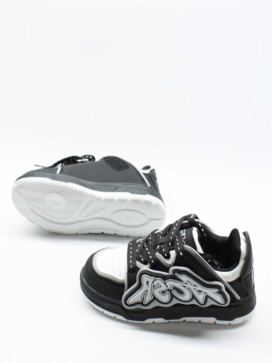 28 (175 мм), 30 (190 мм) Детские кроссовки – идеальный выбор для девочек дошкольного возврата, которые ценят комфорт, стиль и надежность. Модель выполнена из качественных материалов: искусственная кожа, текстиль и ТПР, что обеспечивает долговечность и удобство носки. Натуральная кожа анатомической стельки гарантирует комфорт и гигиеничность. Кроссовки оснащены прочной подошвой из ТПР с клеевым методом крепления, обеспечивающим отличное сцепление на асфальте, в зале и на универсальных покрытиях. Благодаря амортизации, кроссовки смягчают удары при прыжках, приземлениях и флипах, делая катание на скейтборде безопасным и комфортным. Шнуровка позволяет плотно зафиксировать ногу, а декоративные нашивки с буквами придают модели стильный современный вид. Кроссовки сккейтовые – это отличный выбор для девочек школьного возраста, которые любят активный образ жизни, кататься на доске и заниматься спортом.