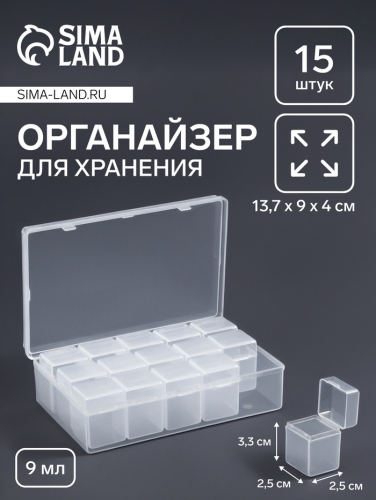 Набор баночек для мелочей, 4 шт., 3.4×3.4×1.8 см, прозрачный