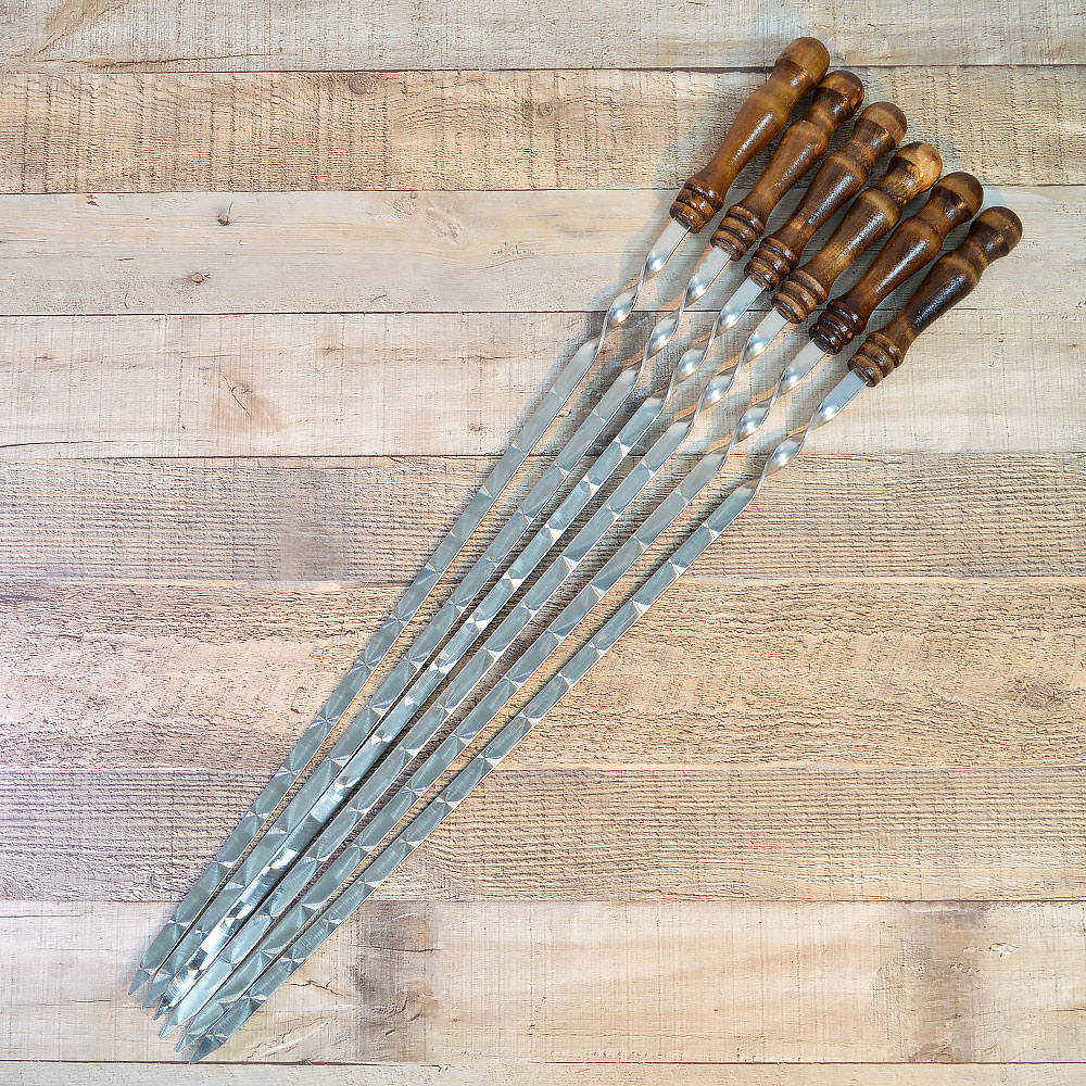 Набор шампуров 6шт 700*12*2,5мм плоских, с деревянными ручками, в чехле
