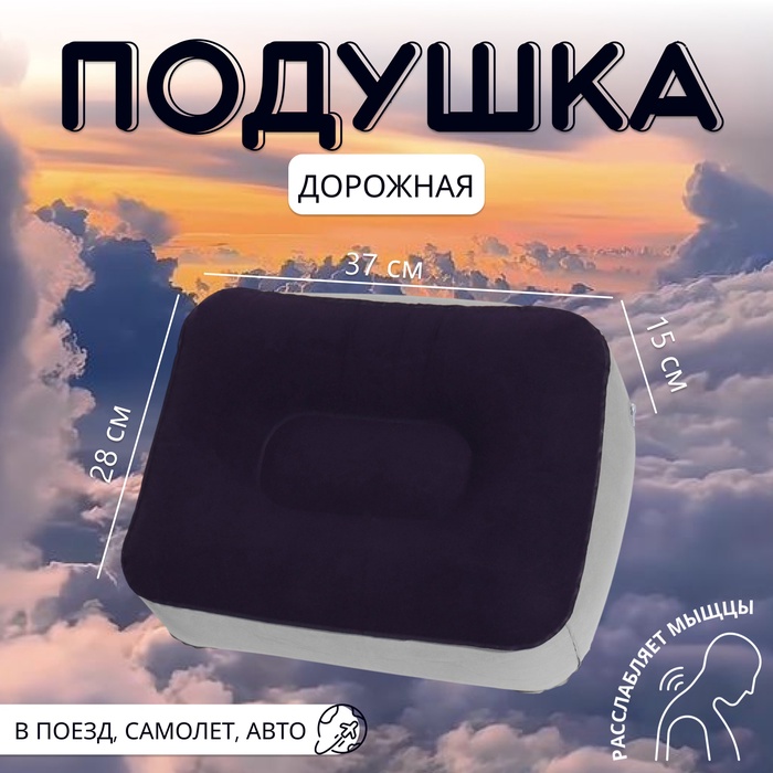 УЦЕНКА Подушка надувная 37×28×15 см синий/серый ОТ