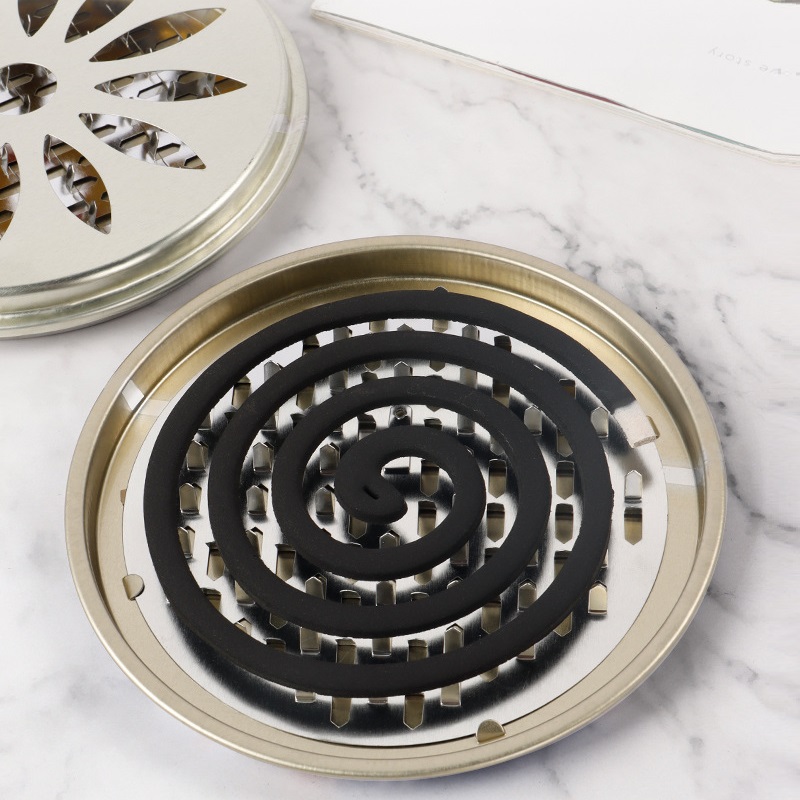 Среди популярных методов борьбы с комарами и мошками существуют спирали, действие которых проявляется при сгорании. Для того, чтобы спирали можно было эффективно использовать и при этом не повредить мебель и другие предметы интерьера для них предлагается специальная подставка с крышкой.