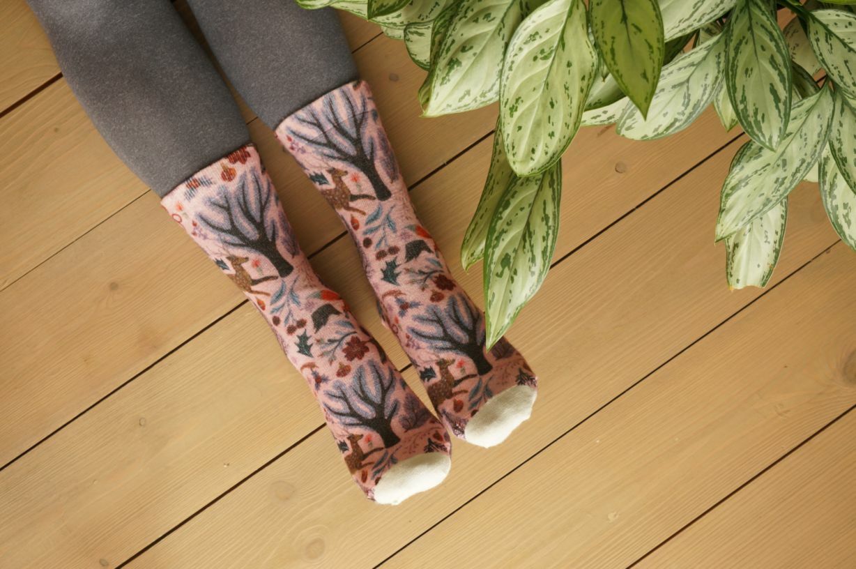 061 Slim Тонкие шерстяные носки Звери в синем лесу