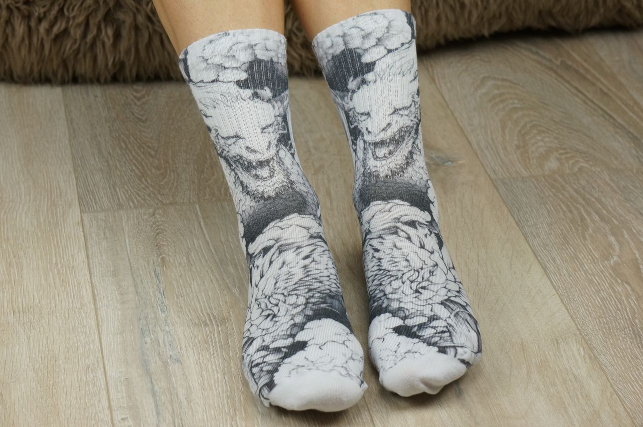 157 Хлопковый носок Драконы. Дракон ЧБ.
