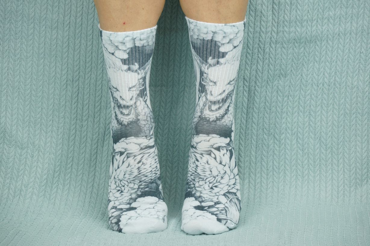 157 Хлопковый носок Драконы. Дракон ЧБ.