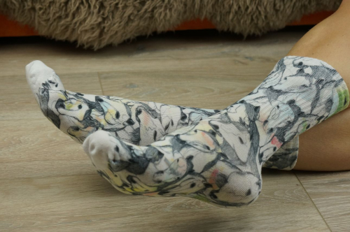 Производим новый продукт на Российском рынке: хлопковые носки с принтом Коттон Принт. Носки вяжутся из гигроскопичной хлопковой пряжи с содержанием натурального хлопка 70%. Благодаря этому носок эластичен, впитывает влагу и чрезвычайно комфортен на ноге. Кеттельный шов, это там где пальцы, выполняется на новом европейском оборудовании и никак не ощущается. Цветной принт наносится экологически чистыми чернилами на водной основе на всю тощину трикотажа, не выцветает и не линяет. Картинка получается яркой и стойкой, к тому же с изнанки нет бахромы которая присутствует на носках с жаккардовым рисунком и которая создает затруднения при надевании. 70% хлопка в составе позволит ногам чувствовать комфорт с утра и до вечера. Комфортная резинка из мягкого эластана не давит и не съезжает. Нашу продукцию стираем вместе с другой одеждой как однотонный хлопковые вещи, при температуре до 90 градусов. Хотите такой же принт на шерсти? Звоните!