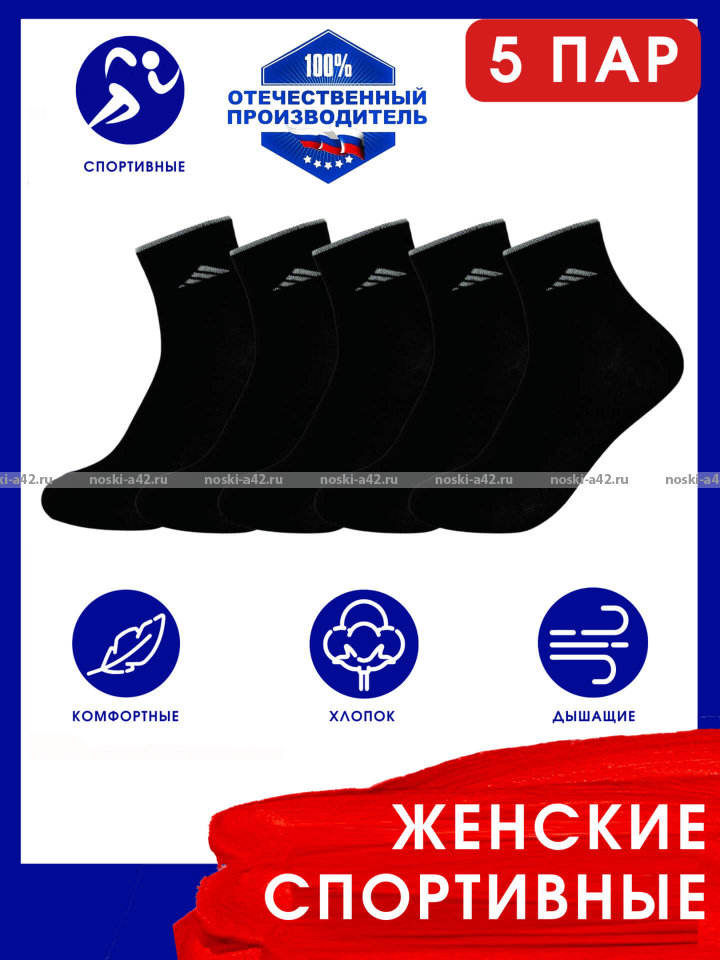 5 ПАР - ЮстаТекс носки женские 2с15 СПОРТ Черные - 5 ПАР