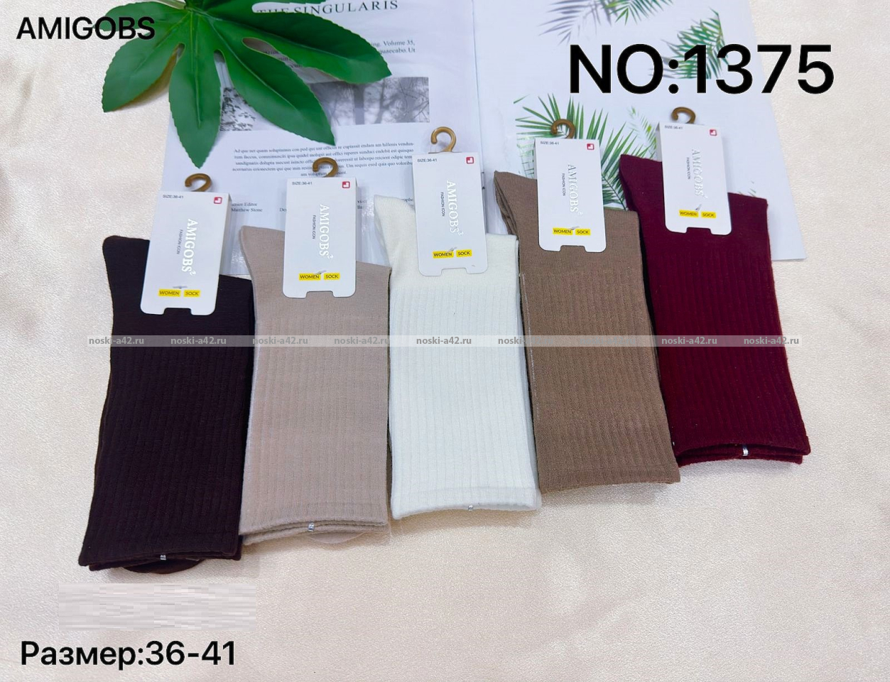 AMIGOBS носки женские однотонные с ВЫСОКОЙ резинкой арт. 1375 оптом.