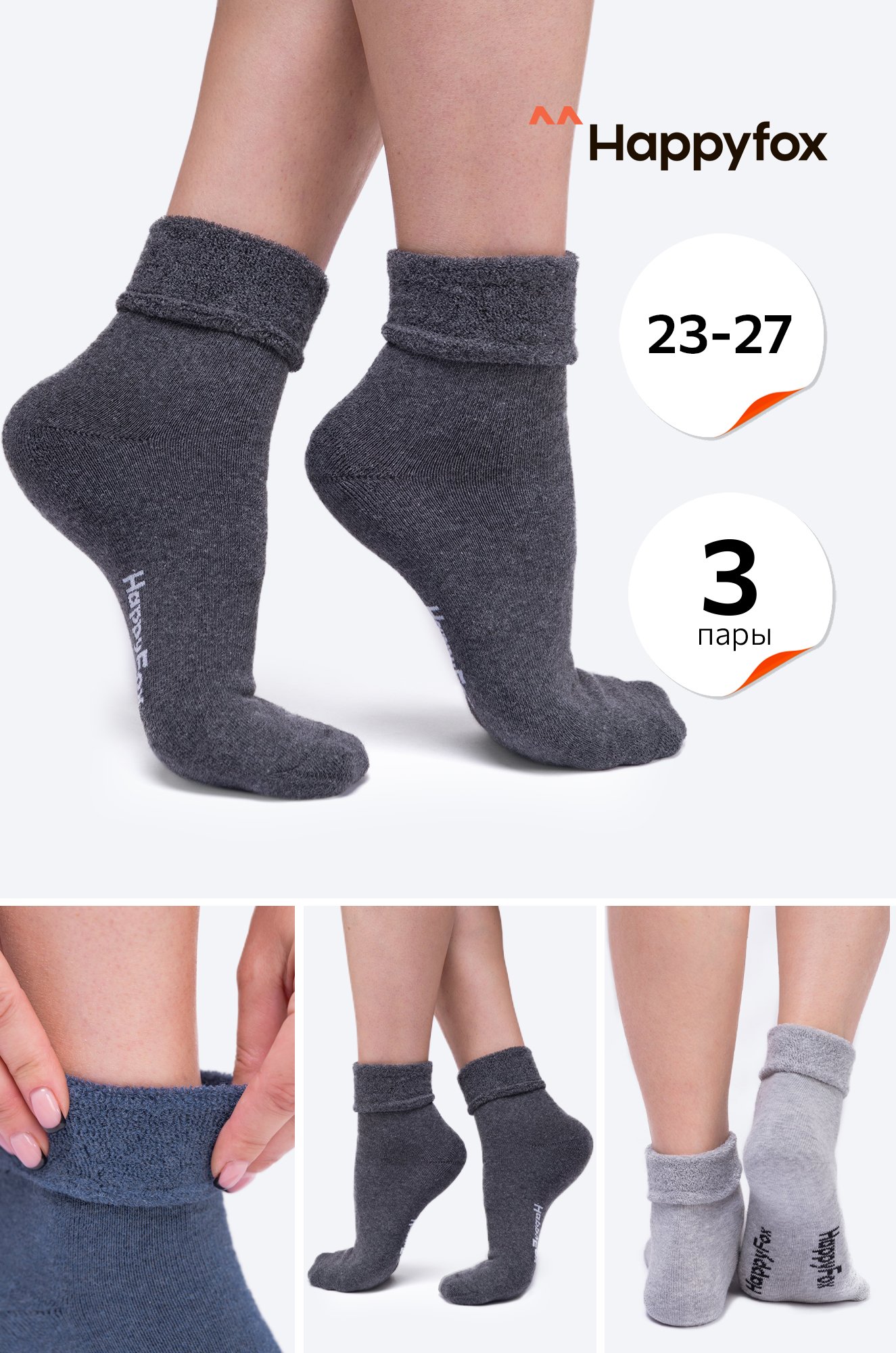 Набор теплых махровых носков выполнен из мягкой пряжи с высоким содержанием хлопка. Женские носки с высоким бортом идеальны для уютных зимних вечеров. В комплекте представлены однотонные махровые носки в базовых цветах, 3 пары.