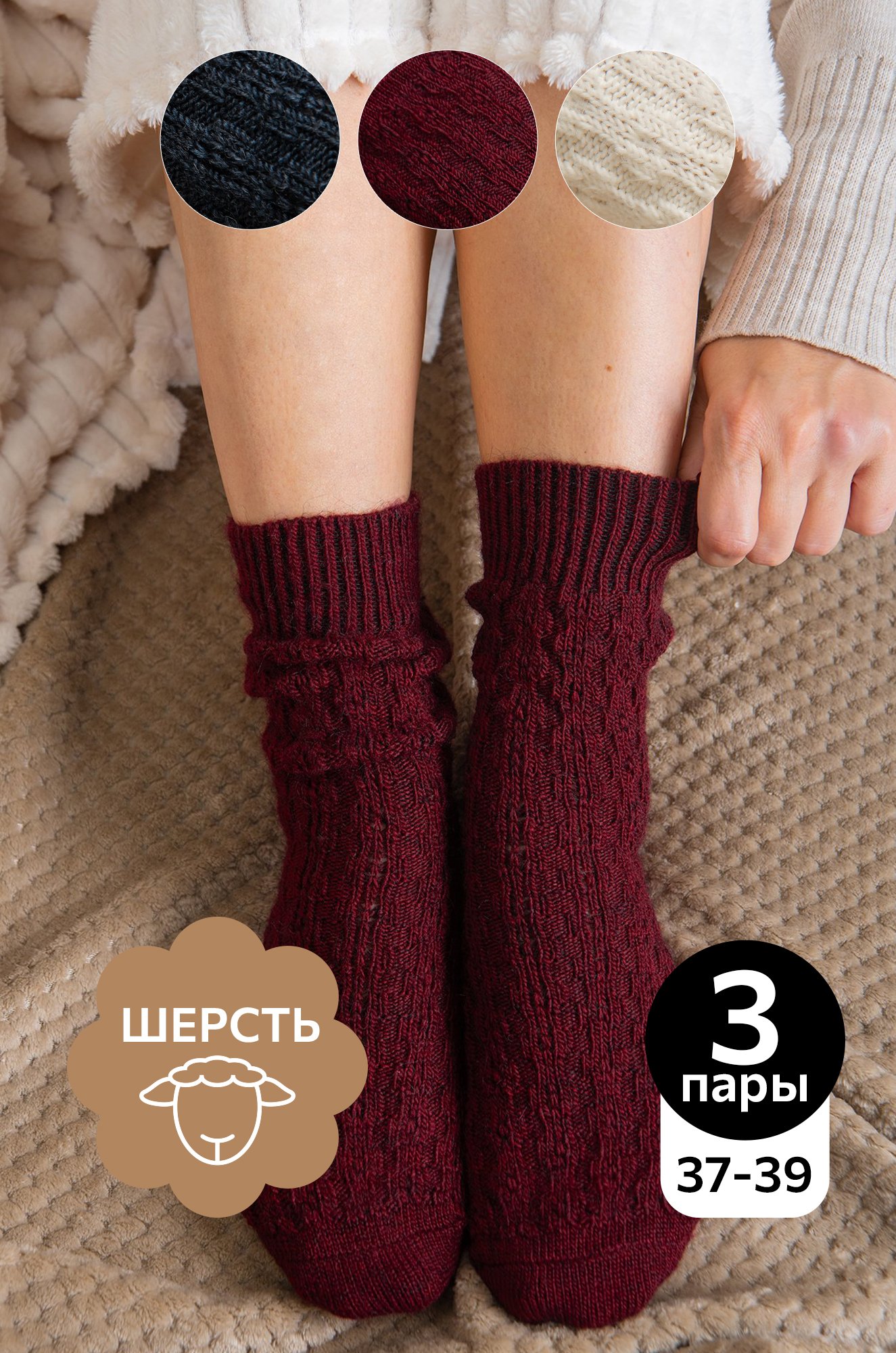 Набор теплых же..показатьнских носков выполнен из приятной к телу пряжи с добавлением натуральной шерсти. Однотонные высокие носки идеальны для уютных осенних вечеров в компании пледа и какао. В наборе представлены 3 пары базовых цветов.